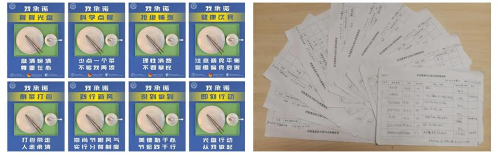 食堂内部也推行不少新举措,如各食堂启用菜肴登记表,进行菜肴计划,开列菜单减少浪费;登记食堂每日剩余餐食情况,进行分析并及时改进;动态监测每日就餐人数,按需制定食材采买量,根据用餐人数,灵活调整菜品供给。