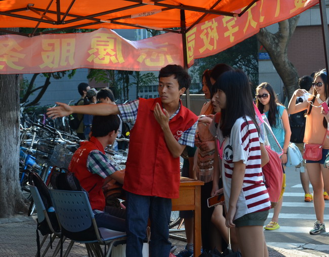 国庆期间,有近200名学生志愿者活跃在校园内,为游客提供义务导游服务,开展文明劝导活动。在校园志愿服务站,身穿红马甲的志愿者们热心地为游客解答疑问、介绍校史,还给他们发送游览路线图。在芙蓉湖等重点区域,一些戴红袖章的文明督导员也在忙碌着,身体力行,纠正不文明的行为。2012级物理与机电工程学院的邢铮从厦大青年志愿者服务网报名参加了国庆假期的校园文明督导志愿服务,虽然只是短短几天,他也颇有感触。他说,文明督导员也是校园宣讲员,是校园形象的一个展示,制止不良行为,也锻炼了自己沟通表达能力,事情虽小,但一定努力做好。