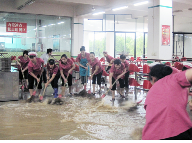 由于学生公寓配电室进水造成海韵园区大面积停电,海韵二期食堂无法做饭,刚刚恢复供电的海韵一期食堂紧急支援,做好饭菜送过去,让2000多名学生及时吃上了热菜热饭。而在漳州校区,北区、南区餐厅工作人员从19日凌晨2点半便开始清理雨水堆积的淤泥,6点及时调整供餐情况,并利用电子屏幕及时通报情况。