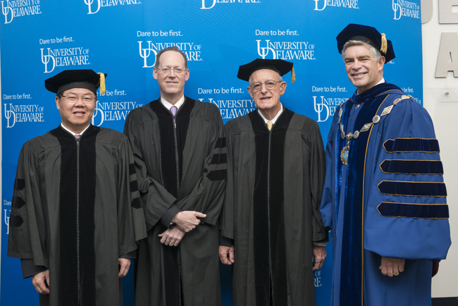 荣誉博士学位是特拉华大学授予的最高荣誉,其授予对象是对社会和公众做出杰出贡献并受到特别认可的人士。为此,获此殊荣的人仅占很小一部分,且都是经过千挑万选才选出来的。在特拉华大学荣誉博士学位的名册中,已经有包括美国前总统乔治·布什(George H.W.Bush)、现任副总统约瑟夫·拜登(Joseph Biden)、美国最高法院法官桑德拉·迪·奥康纳尔(Sandra Day O’Connor)、美国当代重要的新写实主义画家安德鲁·怀斯(Andrew Wyeth)、雕塑家汤姆·弗里德曼(Tom Friedman)以及美国新泽西州州长等。朱崇实校长是特拉华大学在其历史上授予该荣誉的第一位中国大学的校长,他的名字也将与上述名人一起被载入特拉华大学史册。