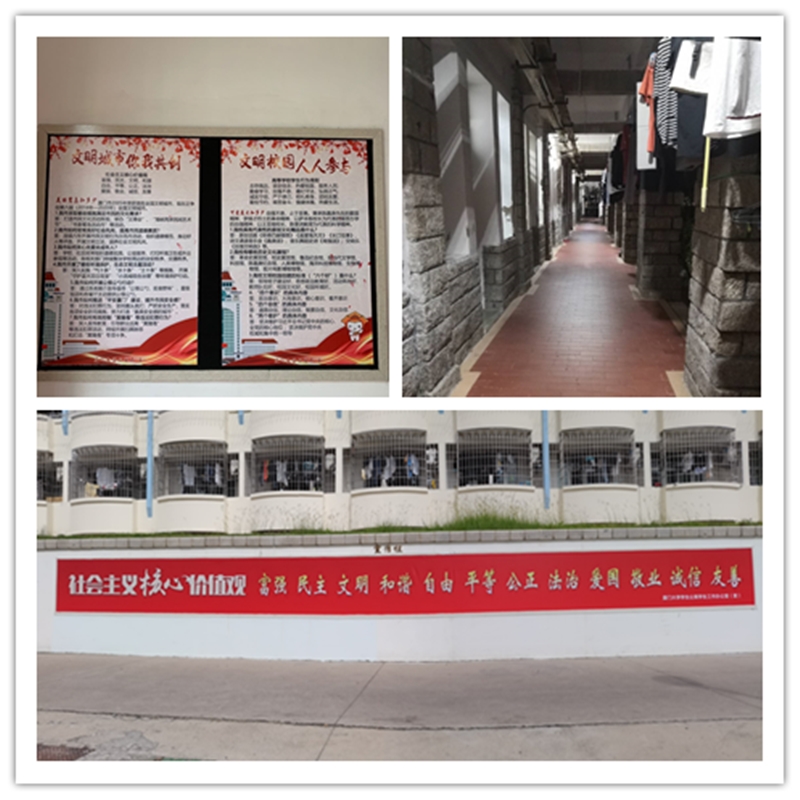资产与后勤事务管理处联合白城社区、演武社区居委会、后勤集团等部门对东区、海滨、白城、凌峰、勤业、敬贤、大南、旧北村等教工住宅区域环境卫生整治。部门重点对学生宿舍周边、校园公共区域进行环境卫生绿化提升,包括路面修复、树木修剪、屋面绿化等,还积极开展垃圾分类宣讲、垃圾分类宣传、垃圾收集点整治等专项活动,引导师生自觉提升垃圾分类意识;通过张贴禁烟标识、文明城市创建基本知识,设置常态化防疫设施,倡导文明新风。