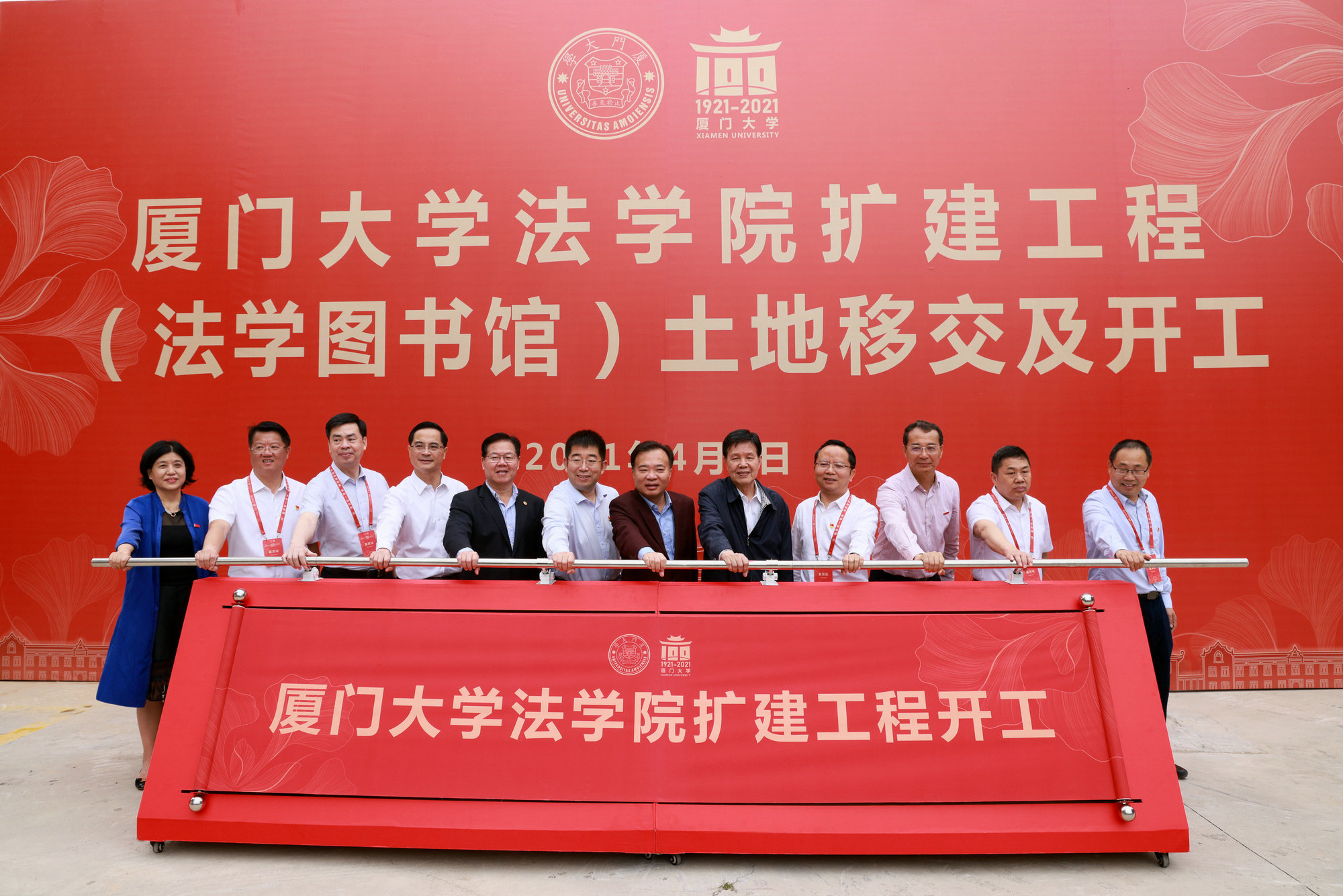 思明区政府向厦门大学移交征用土地。现场领导嘉宾共同推杆揭幕,宣示法学院扩建工程正式开工。