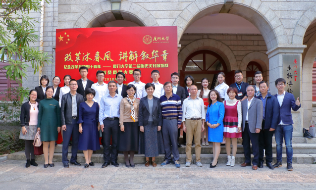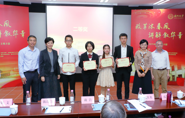 12月2日,由厦门大学党委宣传部主办、人文学院承办的“庆祝改革开放四十周年——厦门大学第二届历史文化展馆群讲解员风采大赛”在成义楼101报告厅举行,担任本次比赛的评委有档案馆馆长戴岩,宣传部副部长楼红英,校友总会副秘书长石慧霞,陈嘉庚纪念馆副馆长陈群言,厦门市博物馆馆务委员、研究馆员、文化鉴定与征集部主任陈文,出席本次大赛的还有各相关单位领导。