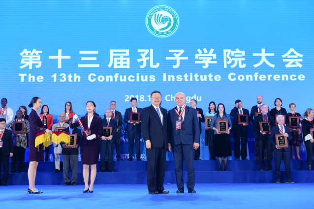 12月5日,在大会闭幕式上,教育部副部长、孔子学院总部理事会常务理事田学军为全球先进孔子学院(课堂)和先进个人颁奖。我校共建的泰国皇太后大学孔子学院荣获“全球先进孔子学院”,美国圣地亚哥州立大学孔子学院下设爱德小学孔子课堂荣获“全球先进孔子课堂”,尼日利亚纳姆迪•阿齐克韦大学校长Joseph E. Ahaneku和波兰弗罗茨瓦夫大学副校长Jan Burdukiewicz荣获“全球孔子学院先进个人”。泰国皇太后大学孔子学院是我校共建的第一家孔子学院,成立12年来,已形成一套完善的管理体系,不仅面向全校非汉语专业本科生开设汉办必修课,使汉语课成为所在大学的热门课程,而且大力支持所在大学的中医学历教育,开创了在国外条件下学习汉语与学习中医相结合、以中文讲授中医、培养合格中医师的新模式,同时自主开发本土教材和“网上汉语练习和测试系统”等,办学质量不断提升。美国圣地亚哥州立大学孔子学院下设的第21所孔子课堂——爱德小学孔子课堂于2017年2月正式揭牌,是所在博威学区第一所孔子课堂,不仅开设该学区第一个沉浸式中文班,而且将六艺文化教学引入中文课堂,以孔子“六艺”为特色的汉语教学成绩显著,中文课不仅成为该校学生最喜欢的课程,而且学校的竞争力和受欢迎程度也因此大幅提升。多年来在尼日利亚纳姆迪•阿齐克韦大学校长Joseph E.Ahaneku的大力支持下,纳姆迪•阿齐克韦大学孔子学院的中文本科项目已纳入尼日利亚国民教育体系,孔子学院的基础设施日渐完善、教学质量广受认可、明星学员不断增加、影响力不断扩大,孔子学院成为全球办学成效最好的孔子学院之一。Jan Burdukiewicz自出任波兰弗罗茨瓦夫大学副校长、孔子学院理事长以来,不仅努力推动中波教育和文化交流,积极支持“一带一路”倡议,而且十分关心孔子学院建设和发展,孔子学院迅速发展,办学条件显著改善,教学点和学员数量突飞猛进,影响力不断提升。