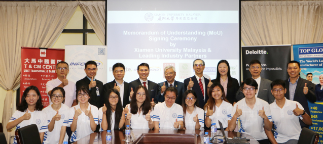 12月3日上午厦门大学马来西亚分校与6家行业领先公司签署了校企合作谅解备忘录。参与签署仪式的包括德勤(Deloitte)、英富保软件科技(Infopro)、大马中医(MTCM Hub)、麦丝中医(Mythmedix TCM)、顶级手套(Top Glove)、信义玻璃(Xinyi Energy Smart)等知名企业。