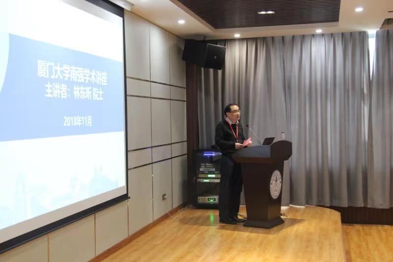 11月30日上午,厦门大学第911期南强学术讲座在医学院成义楼一楼学术报告厅举行。中国医学科学院肿瘤医院林东昕院士应邀为我校师生做题为《piRNA与结直肠癌的研究》的学术报告。讲座开始前,厦门大学副校长、医学院院长韩家淮院士为林东昕院士颁授南强讲座纪念牌。