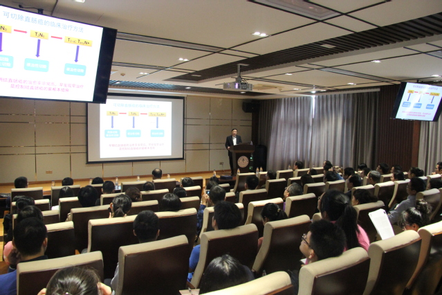 结直肠癌是我国常见的恶性肿瘤,寻找新的肿瘤标志物,提高早期临床诊断水平是提高结直肠癌患者治愈率的重要手段,piRNA是新近发现的非编码RNA。林东昕院士首先介绍了piRNA的基本信息,并展示其团队关于结直肠癌潜在标志物piR-54265的最新研究成果。研究从分子水平、细胞水平和动物水平证明了piR-54265与结直肠癌的关系。与此同时,动物实验性治疗提示了piR-54265是结直肠癌的潜在治疗靶点,利用该靶点有望生产相关试剂盒用于辅助结直肠癌的诊断,具有非常重要的临床前瞻意义。讲座数据详实,充分展现了肿瘤研究学术领军人物的最新成果,为我校基础研究教师及临床一线医生带来了肿瘤研究与防治的新思路、新思考。现场座无虚席,师生们踊跃提问,互动气氛热烈。林院士精彩的报告和耐心谦逊的互动给与会师生留下了深刻印象。会后,林院士参观了医学院部分科研平台,并对学院临床与基础学科的发展建设提出了宝贵建议。