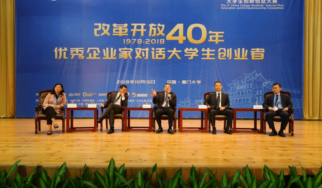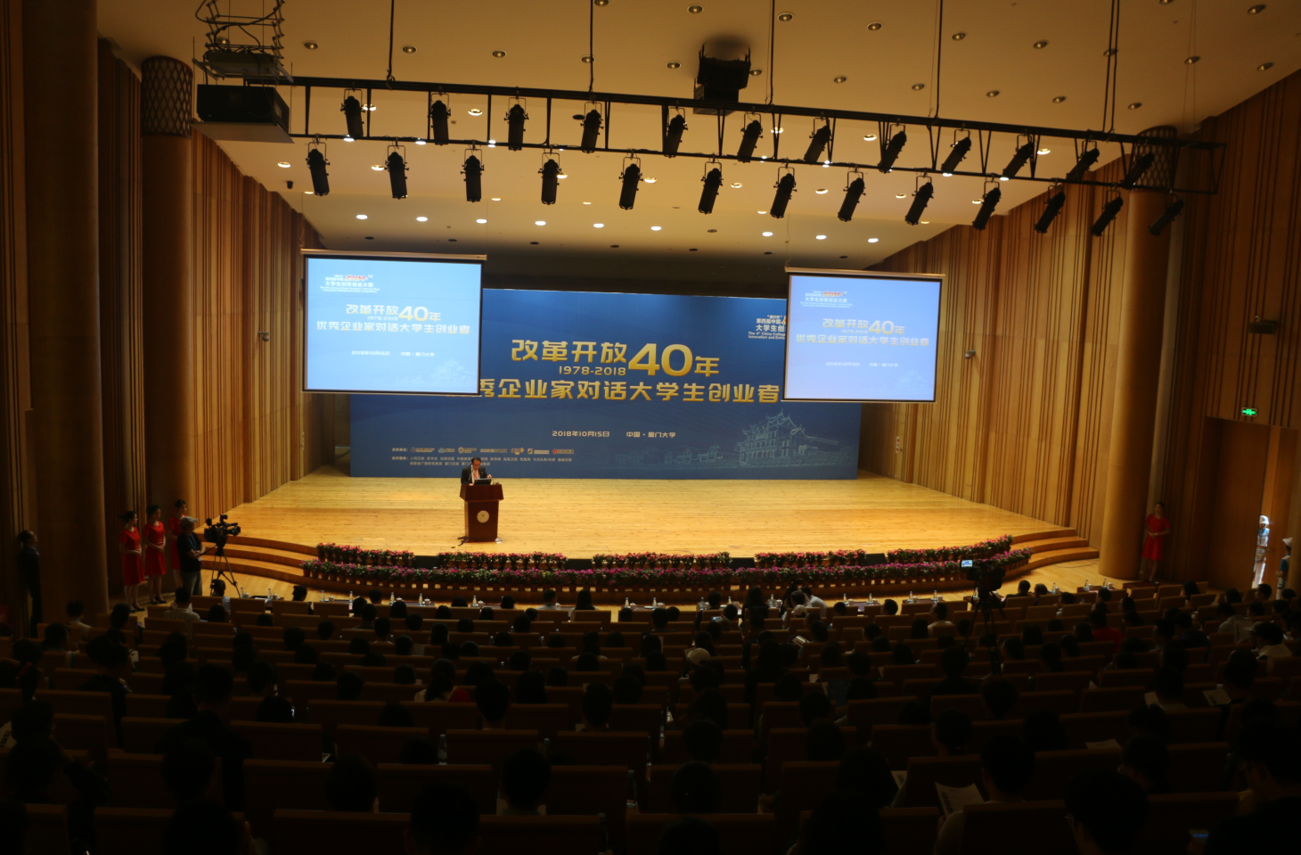 10月15日上午,作为第四届中国“互联网+”大学生创新创业大赛同期活动之一的“改革开放40年优秀企业家对话大学生创业者”协同育人报告会在厦门大学科学艺术中心报告厅、音乐厅分两场同时举行。