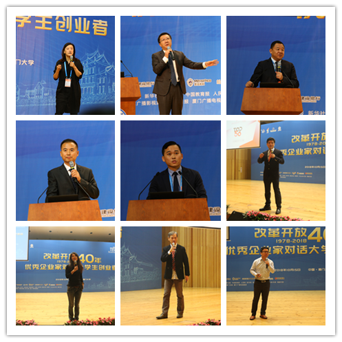 报告会特邀了阿里巴巴集团副总裁、阿里巴巴商学院副院长张宇、赛伯乐投资集团总裁、赛伯乐国际董事长王阳、君紫资本创始人、董事长秦君、建信金融科技有限责任公司总裁雷鸣、厦门市美亚柏科信息股份有限公司董事长滕达、正大集团农牧食品企业中国区副董事长姜波、深圳行云创新科技有限公司创始人吴笛、天峋创新(北京)科技有限公司创始人、CEO陈文涛、厦门玻尔科技有限公司创始人、CEO陈凯武共9位知名企业家、互联网领军人物和优秀青年创客做了主题演讲,畅聊改革开放40年伟大成就,分享创业历程和心得,介绍产业发展趋势、行业人才需求和产学合作育人的成功经验,为青年创业者提供助力和方向,激发青年创业者为梦想拼搏的勇气与动力。参加“互联网+”大赛的团队代表、企业代表和厦大师生代表等聆听了报告,会场座无虚席。
