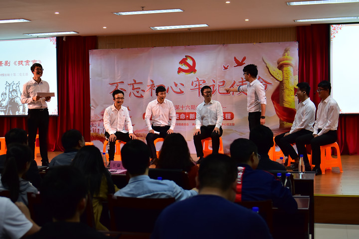 时逢“两个一百年”奋斗目标的历史交汇期,中国特色社会主义步入新时代。沙龙以“不忘初心,牢记使命”为主题,分为“走进新时代”、“肩负新使命”、“领悟新思想”、“开启新征程”四个章节。为激发教工党支部活力,搭建趣味学习平台,本次沙龙由学生党员扩大至全院教工党员,师生共同参与,通过朗诵、歌唱、情景剧、游戏等生动活泼的形式,表达对党的十九大的学习理解。