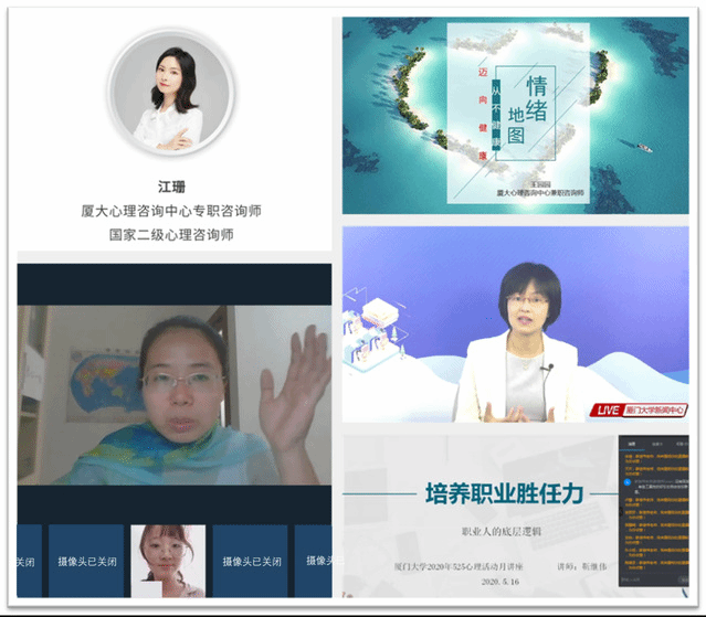 校心理咨询与教育中心利用视友网和厦门大学快手官方号举办了一场题为《如何适应返校生活之心理篇》的网络直播专题辅导,近10万人同时在线收看了赖丹凤主任的授课,起到了良好的宣传教育效果。专题报告内容在校内公众号进行转发分享,进一步扩大了影响力和受益面。中心还利用钉钉、QQ群、腾讯会议开展了11场线上心理讲座和6场心理沙龙,受众近2000人。中心举办了第二届“健康校园 心理防疫”心理知识竞赛,全校共33个学院的1644名学生参与网络答题,共完成4481人次,学生反馈、讨论积极热情。此外,中心还举办了22场线上团体辅导,受众近200人。