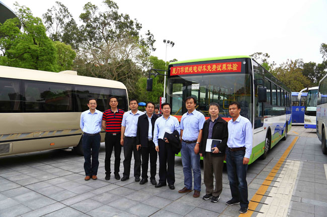 5月6日下午,校长朱崇实在能源学院院长李宁教授、科技处副处长(主持工作)周涵韬、厦门华锂能源有限公司王继辉董事长和厦门金龙旅行车有限公司销售公司副总经理蒲延良、赵立树等人的陪同下,试乘了金旅新一代纯电动大巴,体验了纯电动汽车无尾气排放、无噪声、无怠速震动、加速性能优异和爬坡动力强劲等优良特性。