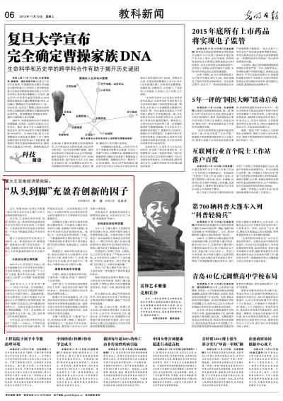 11月13日,《光明日报》第六版(教科新闻)刊发题为“厦大王亚南经济研究院:‘从头到脚’充盈着创新的因子”的通讯,深入报道我校王亚南经济研究院八年多来不断提升人才培养质量并破茧成蝶的过程。