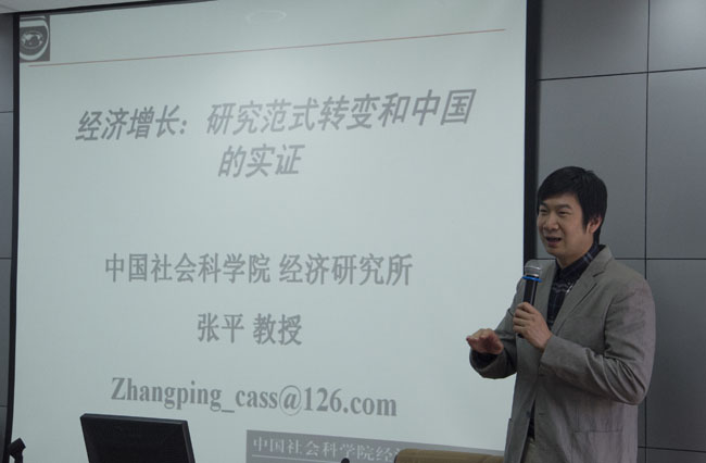 讲座中,张平教授从经济增长领域研究范式的变迁切入,对中国经济的不同发展阶段、未来发展趋势和发展过程中可能面对的种种结构性障碍进行了深入的梳理和分析。他指出,基于卡尔多事实的新古典均衡增长理论具备很强的自洽性和完备的理论框架,然而在解释日益变化的世界时遇到越来越多的局限,催生了基于新典型化事实的新生产要素再探索和结构主义等不同方向的研究范式调整,这同时也促使中国学者归纳中国增长的新现实和运用国际共识逻辑发现和解决中国自己的问题。中国当前已成为中高收入组国家,赶超式发展速度已经难以为继,从结构性效率改善转向效率内生持续改善迫在眉睫。进一步地,张平教授从服务业与产业结构配置效率、城市化、人口红利、信息化、低碳经济等多个方面,详细阐述了中国经济在转轨过程中面临的问题与可以把握的机遇。