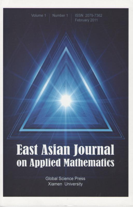 近日 由厦门大学数学科学学院与香港环球科学出版社(Global Science Press)合办的学术期刊《东亚应用数学杂志》(East Asian Journal on Applied Mathematics,简称EAJAM)编辑部收到汤森路透公司(Thomson Reuters)的通知,《东亚应用数学杂志》已经被正式列入Science Citation Index-Expanded(SCIE)期刊库,包括the Web of Science ISI Alerting Service,Current Contents/Physical,Chemical & Earth Sciences(CC/PC&ES)。通知说,《东亚应用数学杂志》自2011年创刊的第一期起所有文章都将被SCI数据库收录,并在近期上线。在许多同行看来,一份学术期刊能在短短的两年时间里取得如此成就非常了不起。消息在9月17日发布后已经收到很多同行的祝贺。