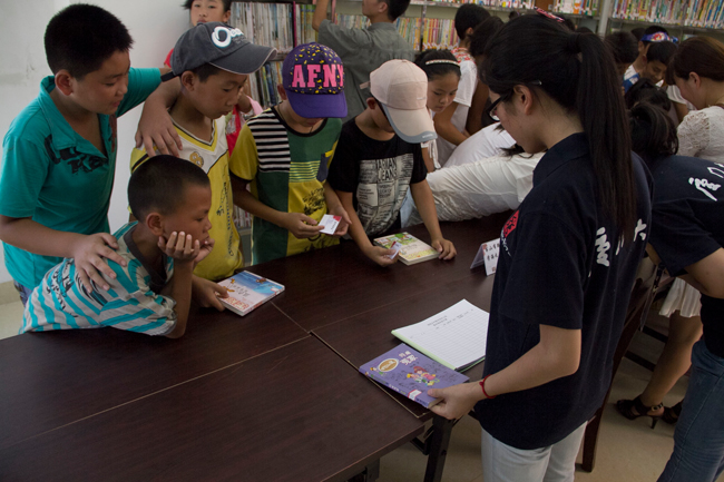 东山馆的布置从7月6日开始,虽只用了2天的时间将4000余册的文学、教辅、科技等各类图书整理、上架,但这却凝结了南强乡村学社志愿者一年来的努力与心血。自2012年10月以来,志愿者们在平时紧张的学习之余,常常奔波在厦门的各个角落,开展募捐活动。上万本募得的书,志愿者们总得一箱一箱搬回学校,再一本一本整理、分类、编号、造册。在东山馆建设前,南强乡村学社还帮助泉州乡村小学建设了班级图书角。