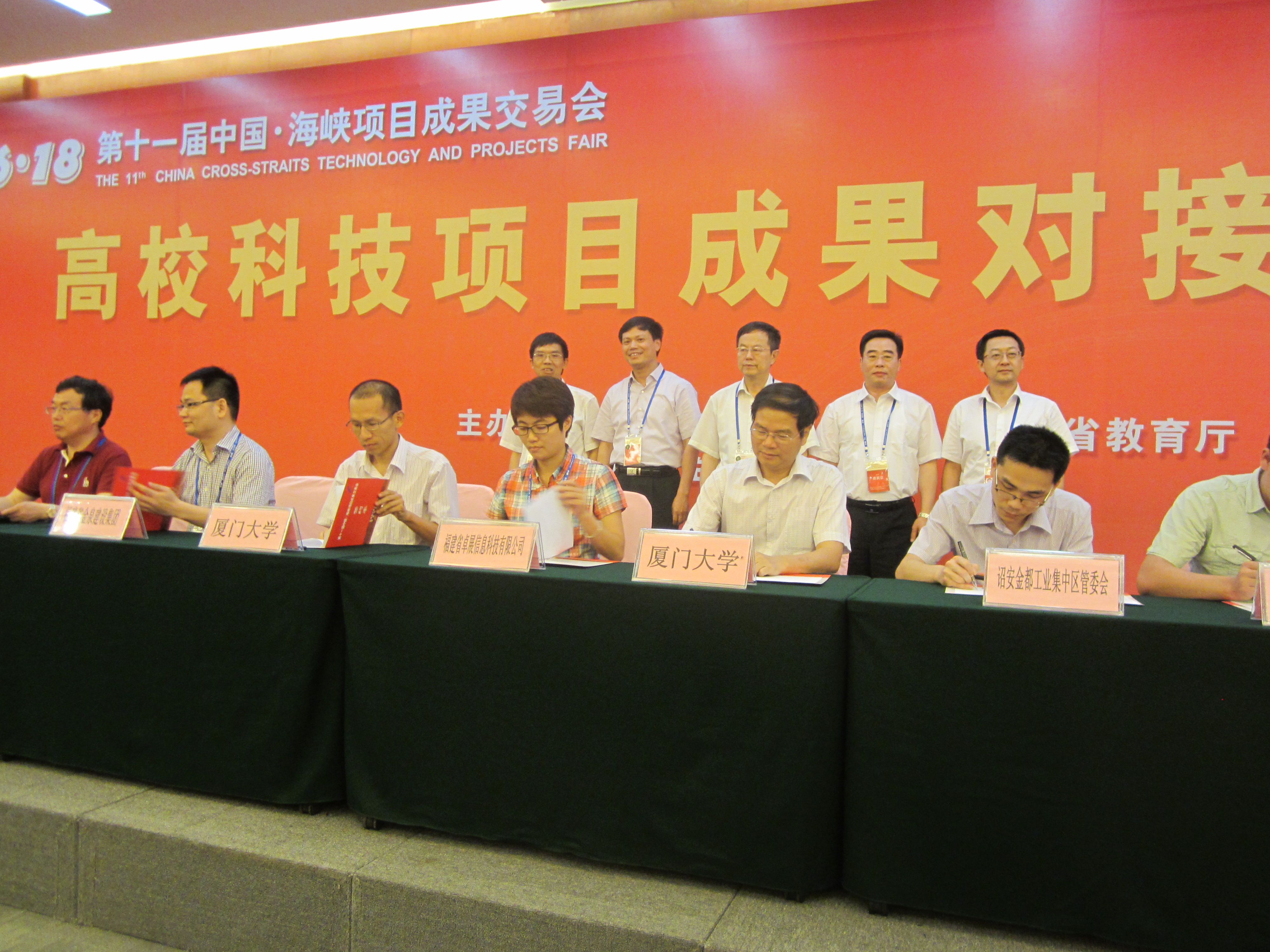 交易会期间,我校还参加省教育厅、福建省新能源科技产业促进会、泉州市人民政府、省海洋与渔业厅等单位组织的签约活动、对接活动,主要有:海洋与地球学院柯才焕教授代表我校与诏安金都工业集中区管委会就“共建福建省海洋生物资源利用协同创新中心”、信息科学与技术学院张贻雄助理教授代表我校与福建卓展信息科技有限公司就“基于无线数传技术的物联网项目合作”举行项目签约,校长助理兼科技处处长李清彪出席项目签约仪式并见证签约;由能源研究院与福建省企业与企业家联合会、海西(厦门)国际新能源产业博览会暨高峰论坛组委会共同发起“海西新能源产业联盟”举行成立大会,能源研究院李宁教授代表联盟与战略合作单位签署合作协议,校长助理兼国际处处长谭绍滨代表学校致辞并见证签约;信息科学与技术学院李军教授代表我校与泉州市人民政府就“共建厦门大学(安溪)信息技术研究院合作协议”举行签约仪式;海洋与地球学院柯才焕教授推介我校海洋与渔业成果等。