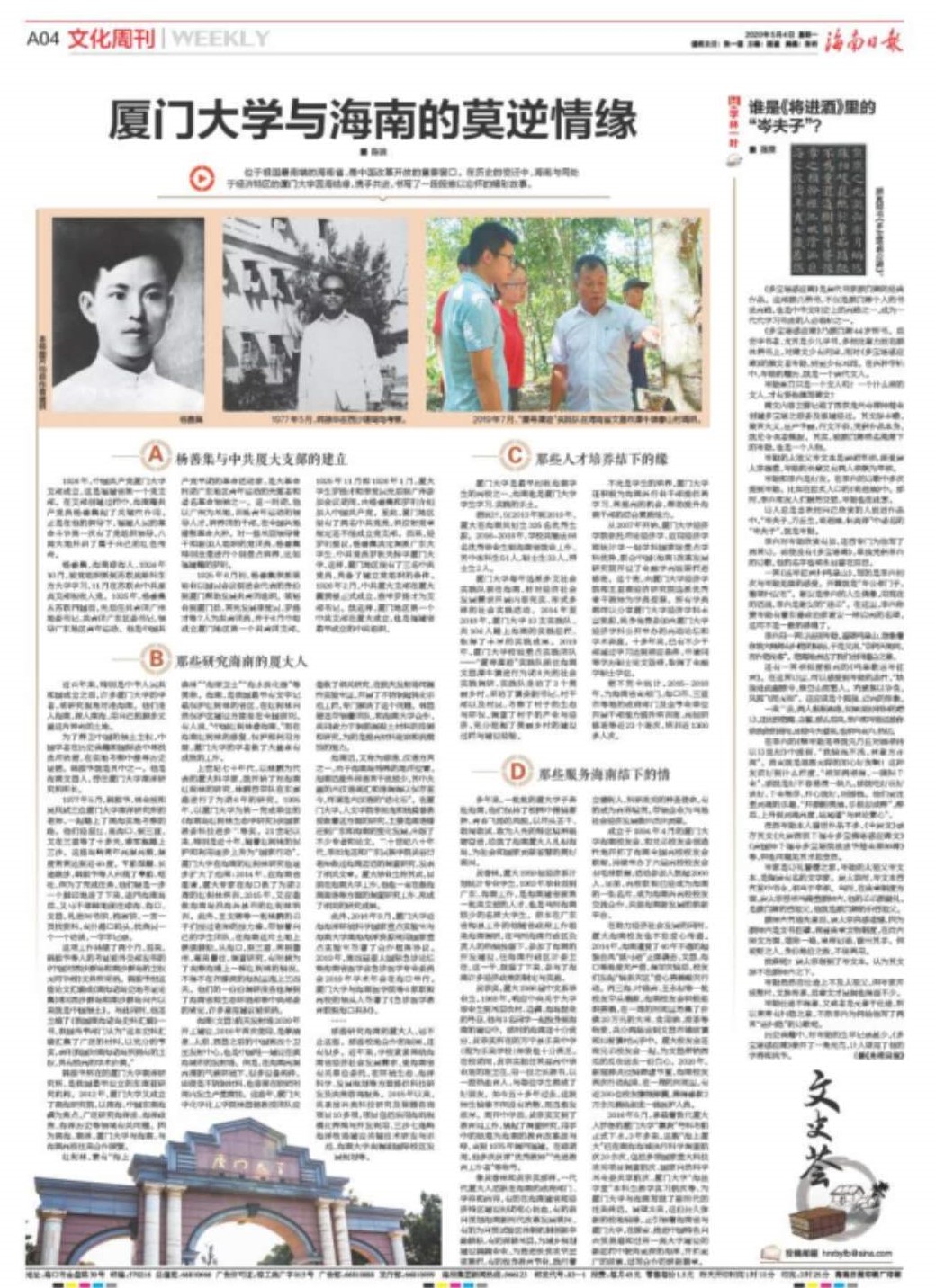 厦门大学是最早招收海南学生的高校之一,海南也是厦门大学学生学习、实践的乐土。