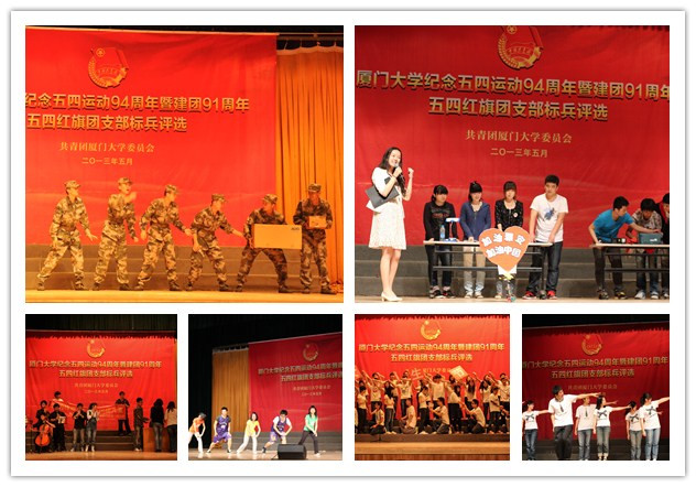 5月4日下午,为纪念“五四”运动94周年和中国共产主义青年团建团91周年,厦门大学2012年度五四红旗团支部标兵评选活动在建南大会堂举行。今年的五四红旗团支部评选采用情景剧表演的形式,全校共有21个学院的团支部申报参评。