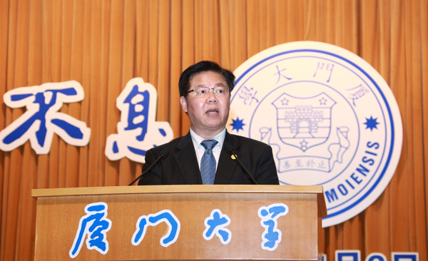 老师们,同学们,校友们,朋友们,习近平总书记提出,中华民族的伟大复兴就是中国梦。这是每一个中国人近百年来梦寐以求的理想与愿望,无数的志士仁人为之英勇奋斗,献出自己的血泪、青春乃至生命!厦门大学从创办的第一天起,也就在为这样的一个中国梦而英勇奋斗!92年来,厦大始终把自己的命运与祖国的命运紧紧联系在一起,一代又一代的厦大人以民族复兴和国家富强为己任,秉承“自强不息,止于至善”的校训,不断地为中国梦的实现而贡献自己的力量。今天,火炬到了我们这一代人的手上,我们一定要把厦大的传统与精神传承下去,发扬光大,我们的目标就是要到建校百年时把厦门大学建设成为一所世界知名的高水平研究型大学,并在此基础上,朝着世界一流大学的目标奋勇前进!为实现中国梦作出我们新的贡献!