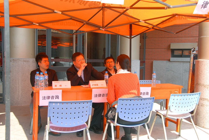 现场有不少师生纷纷前来咨询。所咨询的问题主要涉及土地使用权、婚姻财产、知识产权归属、劳动权益保护等方面,法律专家认真接待,根据现行法律规定耐心细致地帮助咨询者分析所遇到的疑问或争议,提出解决问题的建议方案。咨询者带着各自的问题而来,在与专家们的交流中获益而归。