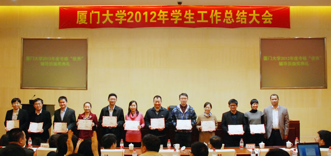 大会还对2012年考核优秀的15名辅导员进行了表彰,号召全体学生工作干部以受表彰的同志为榜样,努力开创学生工作新局面。