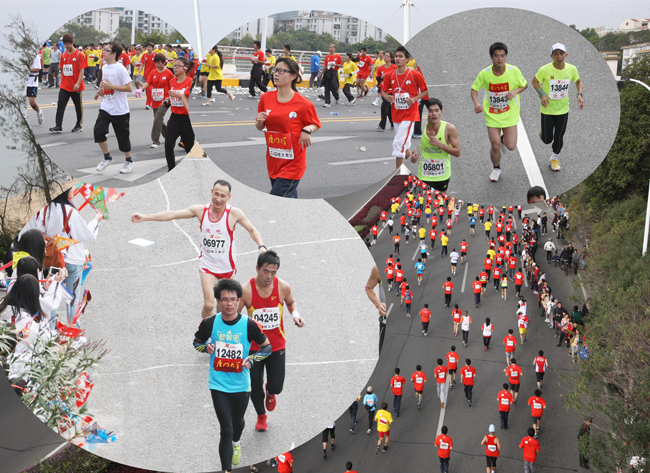1月5日上午8点,2013建发厦门国际马拉松赛在厦门国际会展中心鸣枪开跑,来自不同国家和地区的73896名选手在这被誉为最美丽的马拉松赛道上一展风采,其中2657名选手为厦大师生。比赛分为全程(42.195公里)、半程、10公里和5公里。据统计,在2657名参赛的厦大人中,报名全程赛事的有1752名,居四项赛事之首,其中男子1222人,女子530人。报名半程的人数有498人;10公里的有252人;5公里的有155人。我校人文学院院长周宁作为解说嘉宾在演播室与大家一起分享马拉松带来的快乐。