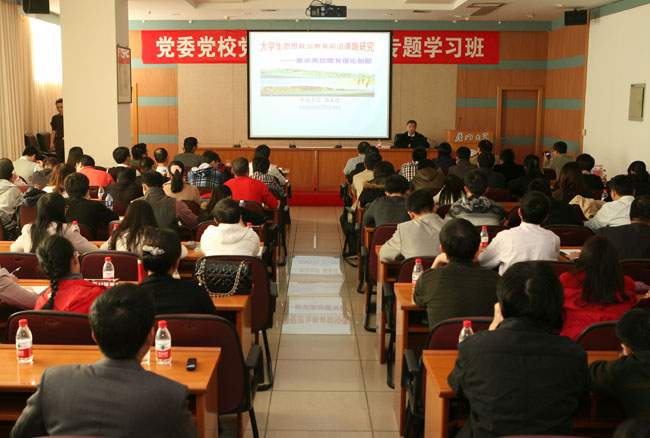 在报告中,郑教授结合党的十八大精神,以思想政治教育学科的发展与前沿为主题,结合自己的人生经历,工作实践和研究成果,系统分析了高校思想政治理论教育和管理工作的特点和改革发展历程。