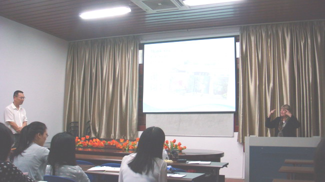 Nord教授首先简要阐述了翻译理论研究及其历史发展过程。随着Nord教授的介绍,在座师生的思路从西塞罗到马丁路德,从Schleiermacher再到现代翻译理论大师耐达,同学们无不对Nord教授幽默的风格、渊博的学识和严谨的治学态度心生敬佩。接下来Nord教授介绍了翻译理论研究的几种模式,指出翻译研究与翻译理解、翻译行为、翻译心理模式、目的语文化、目的语认同、数据库等密不可分。接着,Nord教授还对译者的职业道德等方面的问题进行了细致的讲解。讲座期间同学们全神贯注,听得津津有味,连站在过道上的同学也忘记了自己竟然站了2个多小时,整个讲座气氛热烈而又轻松活泼。