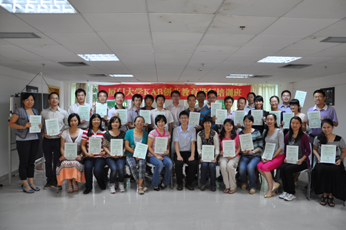 本次KAB创业教育讲师培训班重点讲授了参与式教学方法与培训技巧。其中头脑风暴、角色扮演、案例分析、小组讨论、团队游戏等教学方法令大家感觉耳目一新。学员们被KAB所倡导的创业教育理念和先进教学方法、技巧所吸引。学员们放弃了假期休息时间,全身心投入到紧张的学习当中。通过认真学习,参训学员全部掌握了创业教育课程体系及其讲授方法与技能,获得了“大学生KAB创业教育讲师结业证书”,我校大学生创业教育师资力量得到进一步增强,为我校大学生创业教育的发展提供了新动力。