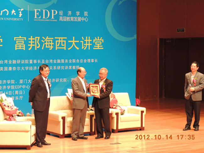 据悉,“厦门大学富邦海西大讲堂”由厦门大学经济学院、厦门大学王亚南经济研究院与台湾富邦金控联合设立。该讲堂计划每年分季度在海西区域及全国各地举办四场论坛,主要围绕宏观经济金融形势、两岸经贸金融合作、海西区域经济发展、企业资本运作实务等主题,邀请海内外知名专家、学者、企业家发表专题演讲。“大讲堂”致力于加强两岸经济金融合作关系,为海西各界精英提供一个更新知识、拓展视野、交流经验的高端平台。