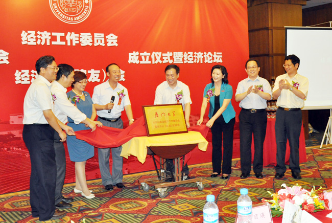 6月9日,北京校友会经济工作委员会、经济分(院友)会成立仪式暨2012年经济论坛在北京光耀东方中心隆重召开。校党委书记杨振斌、北京校友会会长陈抗甫、国家粮食局副局长曾丽瑛,校友总会副理事长詹心丽、校友总会秘书长郑冰冰、经济学院与王亚南经济研究院院长洪永淼,经济学院与王亚南经济研究院代表,全国部分地区的校友会代表,北京校友会理事会成员、各分会代表,来自各行各业的300多名新、老校友欢聚一堂,共庆盛典。