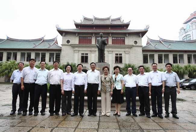 在座谈前,江丙坤参观了我校校史馆、建南大会堂、上弦场、台湾研究院,详细了解我校办学历史、未来规划和台湾研究工作情况。