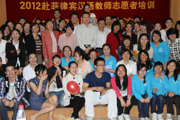 近百名国家汉办2012年赴菲律宾汉语教师志愿者,4月19日晚在厦门大学完成培训,举行结业典礼和汇报演出。