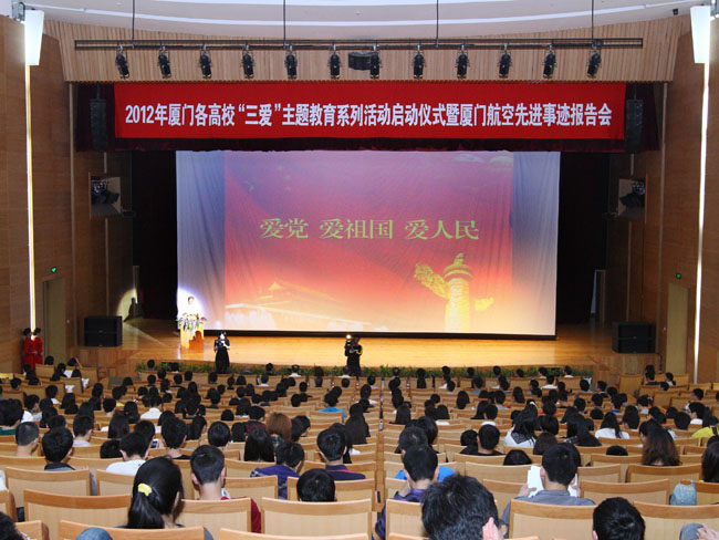 4月19日下午,2012年厦门各高校“爱党、爱祖国、爱人民”主题教育系列活动启动仪式暨厦航先进事迹报告会在我校科艺中心举行。市委常委、宣传部长叶重耕,副市长黄强,我校党委副书记陈力文,市委宣传部及厦门市各高校领导出席了启动仪式。
