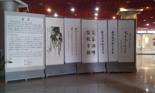 此次画展得到老同志们的积极响应和热情支持,他们泼墨挥毫,妙手生花,展出的作品内容丰富,形式多样,涵盖了书法、绘画、剪纸和篆刻等。展出第一天就吸引了一批参观者,其中有年逾花甲的老同志,也有青年学子,他们有的默默品味作品内涵,有的相互交流体会、切磋技法,有的则在自己钟爱的作品前驻足留影,将美好的艺术永留心中。