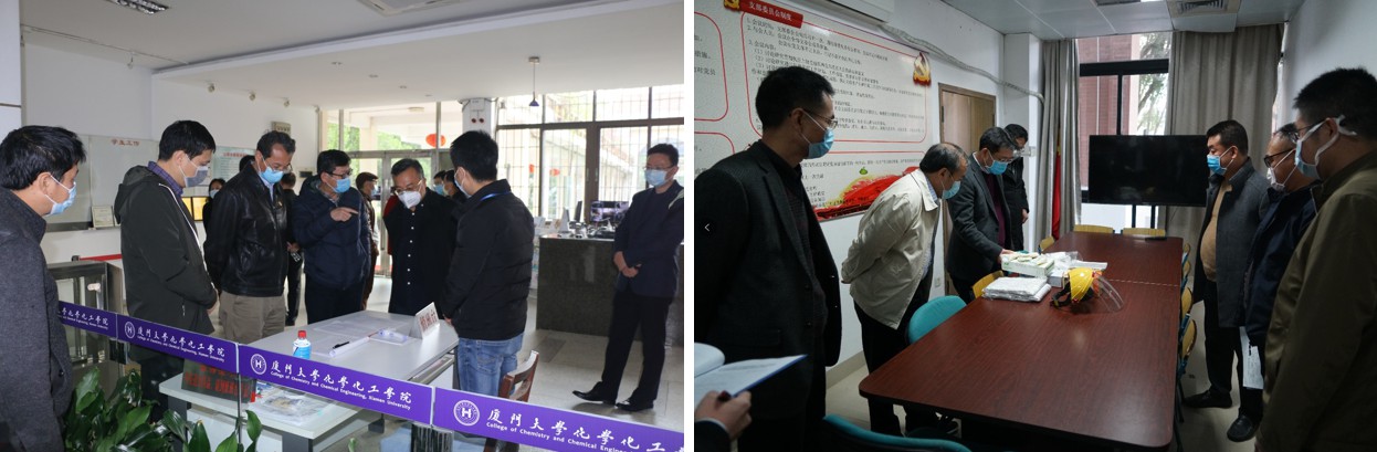 检查组按照“不打招呼、不事先告知”的原则,对党政管理干部值班值守情况进行突击“查岗”。此次检查范围集中在思明校区。在后勤集团,校领导询问了餐饮供应、就餐人员等情况,要求做好校园重点区域消杀,确保环境卫生和食品安全。在管理学院、经济学院、化学化工学院、艺术学院、法学院,校领导听取了各学院负责人关于疫情防控的有关情况,详细询问了物资储备、师生管理、离退休人员帮扶等情况,要求切实做好师生员工的疫情防控宣传工作,加强摸排和监管,同时要做好师生的心理建构,尤其要加强对疫区师生的关心慰问和心理疏导 。在海韵园、访客中心、群贤校门、大南校门、化工厂校门等人员进出场所,校领导详细询问自学校实行严格管控以来所采取的防控举措、人员车辆进出检查登记等情况,要求各检查点要切实履行职责,加强对进入校园车辆和人员的排查,发现异常情况要及时上报并妥善处置。在研究生院、教务处等单位,校领导详细了解毕业论文、网络课程开设等情况,要求提前谋划,切实做好开学工作方案。