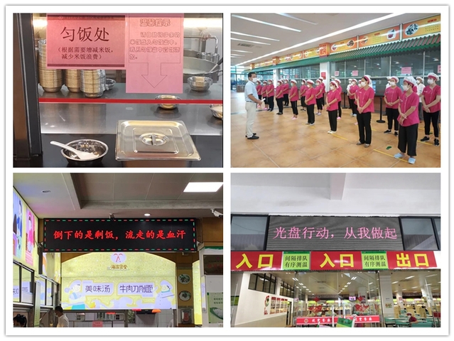 8月19日起,中心各食堂统一执行5项新举措:一是设立匀饭处,并附标识牌说明,引导师生杜绝浪费米饭;二是各食堂使用菜肴登记表,逐步进行菜肴计划,养成开列菜单的习惯,减少浪费;三是调整馒头的克重,增加小克重馒头(55g小馒头)的供应;四是引导学生合理点餐,当学生已点两荤一素时进行适当提醒,并加强员工岗前一课培训;五是营造良好宣传氛围,如在各食堂张贴海报,在LED屏幕滚动播放相关标语等。“坚决制止餐饮浪费行为切实培养节约习惯”,饮食服务中心将深入贯彻落实相关精神,创新方式方法,带动更多师生参与进来,共同践行“厉行节约、反对浪费”的社会风尚。