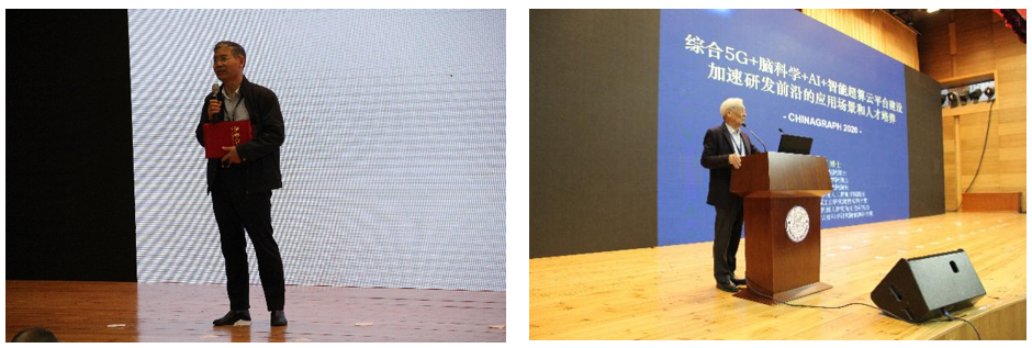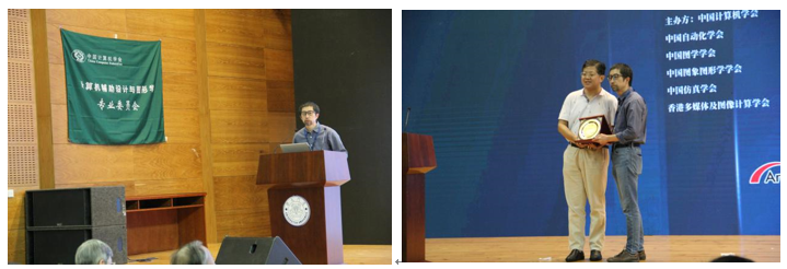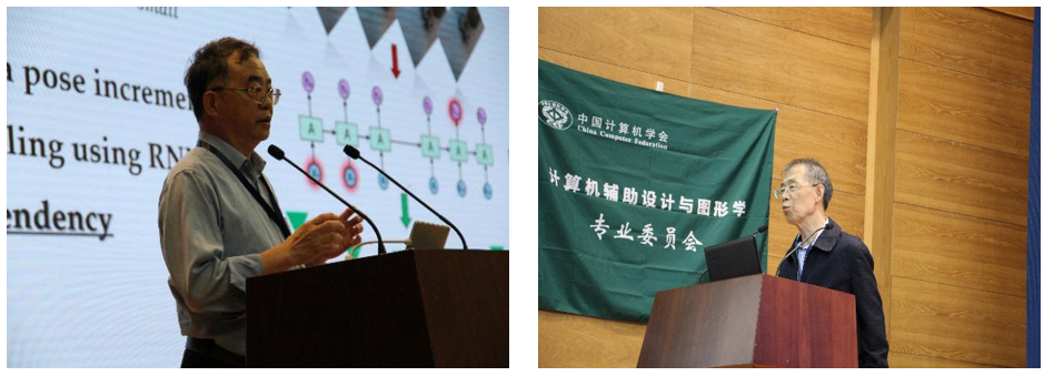会议于10月21日开始举行会前课程、技术论坛和论文报告等,于23日正式开幕。大会向中国科学院软件研究所及澳门大学的吴恩华教授颁发了2020年度中国计算机图形学贡献奖,向北京大学汪国平教授颁发2020年度中国计算机图形学杰出奖,同时还颁发了首届图形开源软件奖和图形开源数据集奖,并致谢了给予大会支持的赞助企业。接下来,美国国家工程院陈世卿院士和北京大学査红彬教授分别进行了主题为“基于5G+脑科学+AI+智能超算的文创产业应用和人才培养”、“3D视觉:在线学习的途径”的特邀报告。大会于24日邀请到加拿大Simon Fraser University的张皓教授进行了“Learning Generative Models of 3D Shapes: From Implicit Functions to Structured Representations”特邀报告。