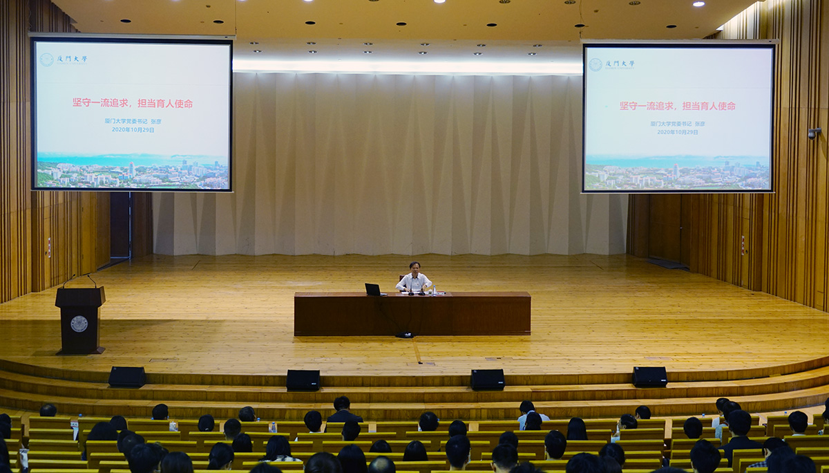 欢迎仪式后,张彦作题为《坚守一流追求,担当育人使命》的专题报告。他表示,建设中国特色世界一流大学需要一流的人才队伍,新教工们正是厦门大学奋进新百年征程的重要力量。简短且庄重的“荣休”和“欢迎”仪式,正是一代代厦大人薪火传承、接续奋斗的生动写照。