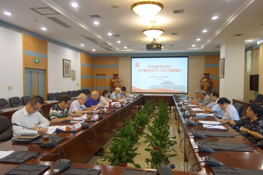 会上,老同志和在职干部们踊跃发言,回顾我校关工委近30年的工作历程,结合厦大实际,分享学习习近平总书记重要指示的心得体会,就做好下一阶段关心下一代工作提出意见建议。大家一致认为,习近平总书记的重要指示充分肯定了关工委成立30年来的工作成绩,积极评价了“五老”队伍在做好关心下一代工作中发挥的重要作用,对做好下一阶段工作指明了方向,提出了任务与要求,特别是强调各级党委和政府要加强领导,支持更多老同志参加关心下一代工作,令人深受鼓舞,更感责任重大。不少同志表示,要以百年校庆筹备为契机,挖掘更多厦大红色文化用以青年学生的思想政治工作,引导青年提高政治鉴别力,坚定理想信念,听党话、跟党走;要适应网络时代的新路径,不断探索网上思政工作的新思考、新路径;要打造更多符合青年学生需求、具有吸引力的工作平台,进一步提高思政工作的针对性和有效性;要加强关工委自身建设,通过基层党委团结、动员更多老同志加入关工委工作,更好地弘扬厦大优良传统,讲好厦大故事,传播厦大精神。