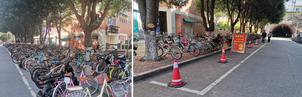通过多措并举打好“组合拳”,有效推进了自行车停车秩序治理。经过多部门合力、积极创新思路、有序有效推进自行车清理,思明校区的自行车停放空间、停车秩序得到前所未有的改善,文明停车也已渐渐成为师生在校生活的一种习惯,整治自行车停车秩序也带来了实实在在的效果。