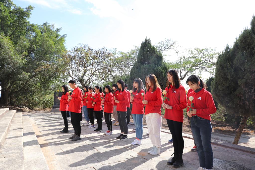 碧血书丹青,英灵铸丰碑。红色基因的传承事关江山本色,革命英雄的功勋应被永世铭记。离开沙美村后,同学们乘车前往后岩山烈士公墓祭奠革命先烈,为先烈们献花默哀。“安眠于此的前辈们,请你们放心,我们每一位中华民族子女,一定会守护好祖国万千河山,守护好我们脚下的每一寸土地,让中国自信地傲立在世界舞台上!”团员代表杨丰泽在致辞中如是说到。烈士们为了脚下这片土地前赴后继地英勇献身,始终是激励着一代又一代人的强大精神动力。同学们在祭奠先烈的红色教育中坚守初心、勇担使命,将革命先烈为之奋斗、为之牺牲的伟大精神奋力推向前进。
