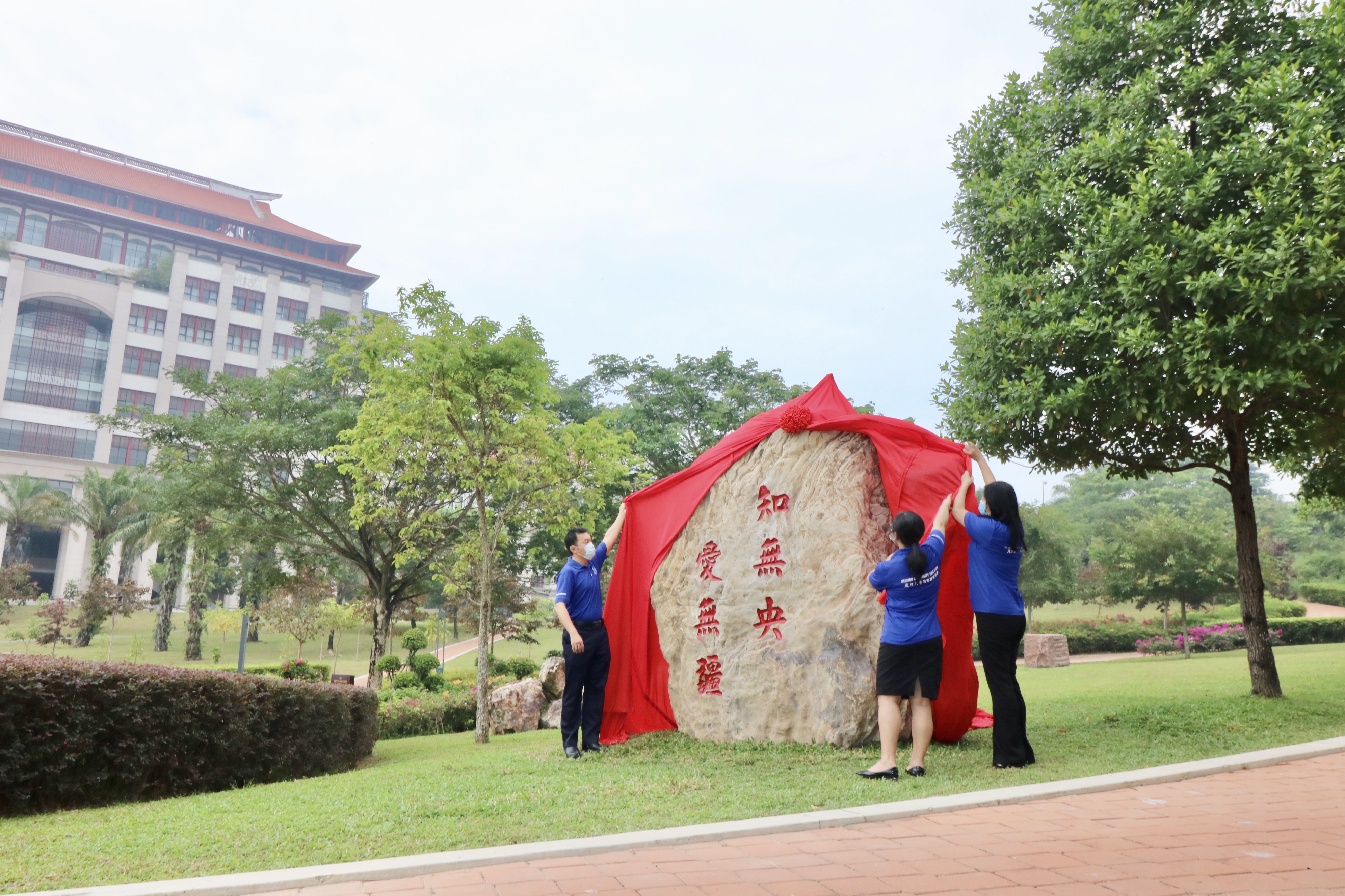 在隆重庆祝厦门大学建校100周年暨厦门大学马来西亚分校创校5周年之际,4月3日上午,马来西亚分校在芙蓉湖畔三角梅园举行简朴而庄重的校歌石揭幕仪式。分校校长助理张颖,科研中心主任王惠琼,学生事务部、招生部总监王华德共同为校歌石揭幕。校内师生代表参加了仪式。仪式由分校校长行政助理李晓雯主持。
