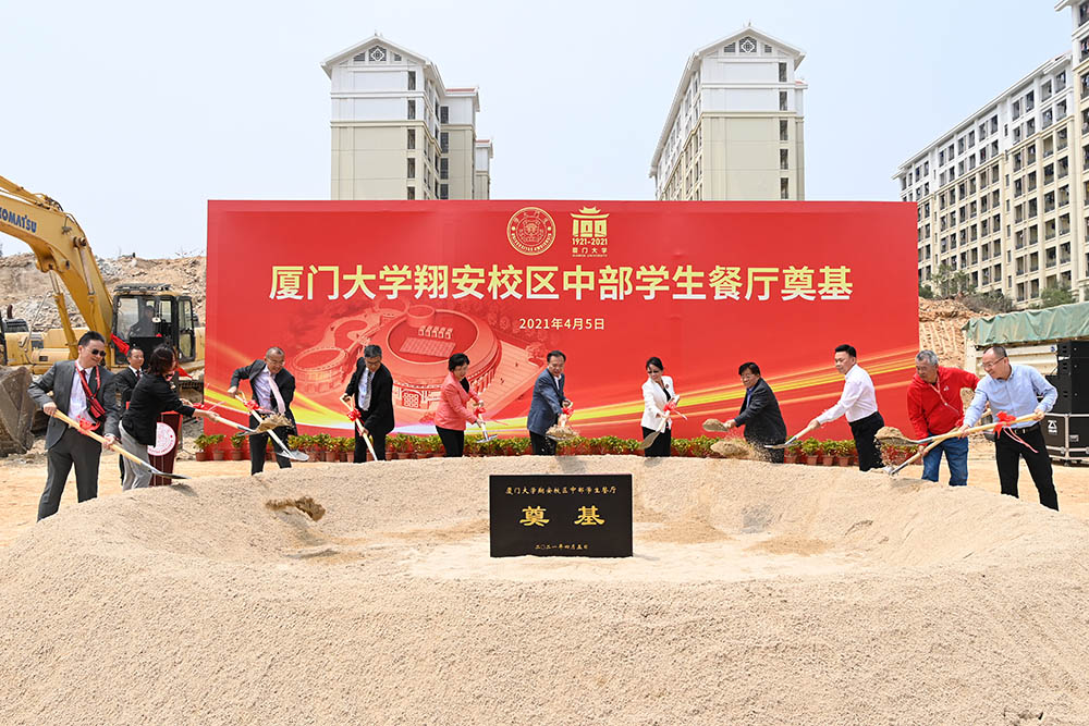 现场领导嘉宾共同为翔安校区中部学生餐厅奠基培土。