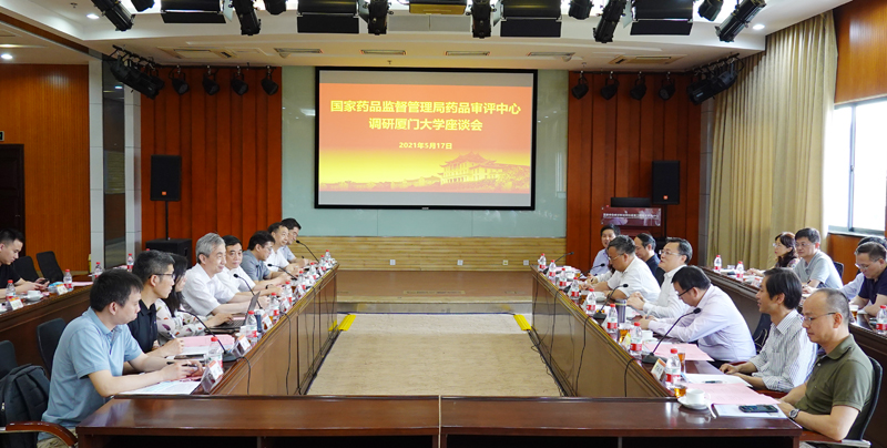 福建省药品监督管理局党组书记、局长俞开海主持座谈会。国家药品监督管理局药品审评中心、福建省药品监督管理局、厦门市市场监督管理局、厦门大学、合作企业相关人员参加调研。