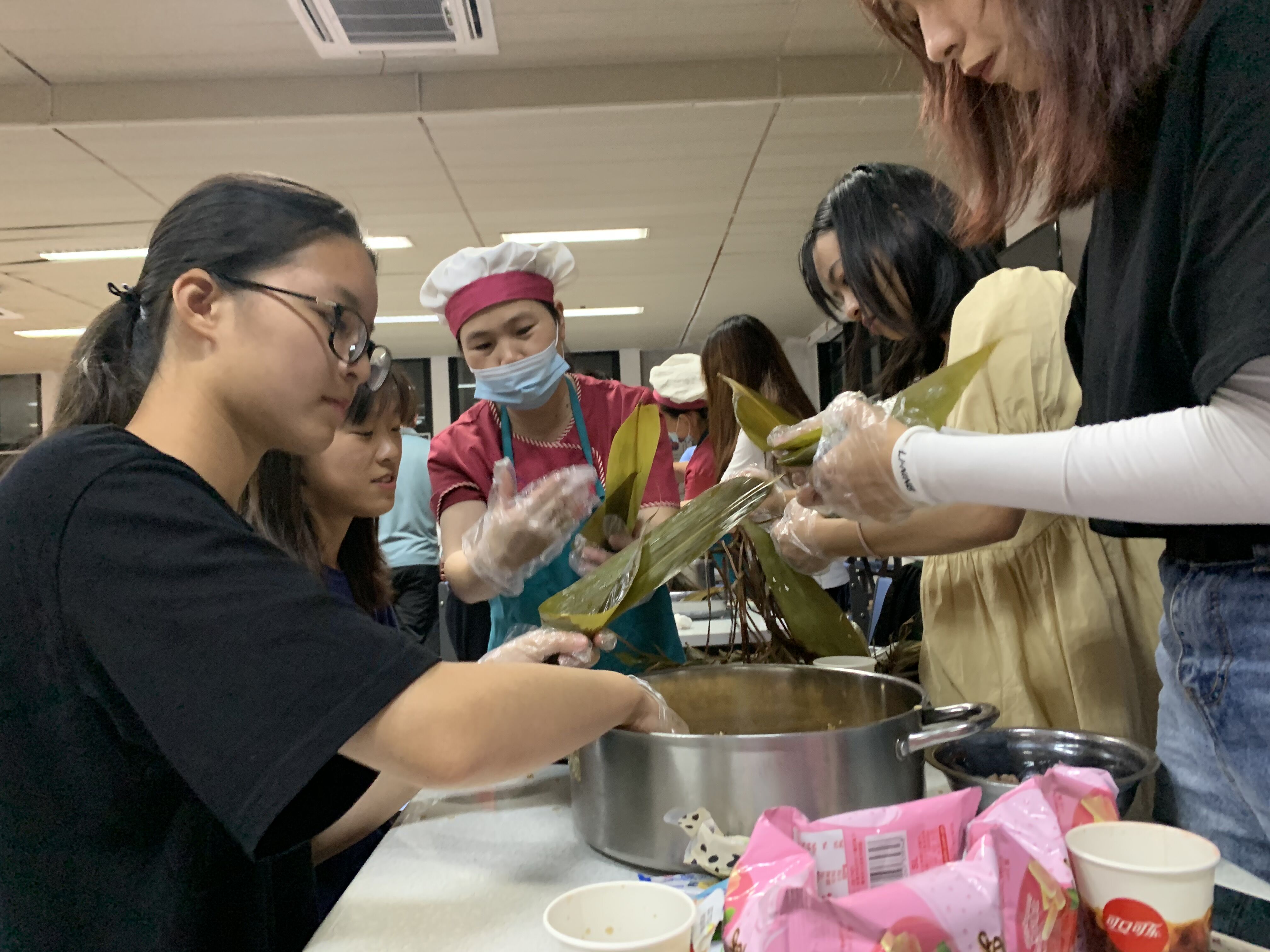 “结果虽甜,过程不易。”“师傅”手把手地教,“徒弟”一招一式地学。特别是外教老师,通过学习体验包粽子的过程,感受到了中华传统文化的博大精深。大家边包粽子,边唠“家常”,谈笑间一个个粽子不断地“诞生”。看着样式不同、大小不一的粽子,师生们不禁感叹:包粽子其实也不容易,餐厅要提供那么多美观有型、口感软滑的粽子更是不易,我们应该给默默奉献的后勤人多一份理解与宽容。