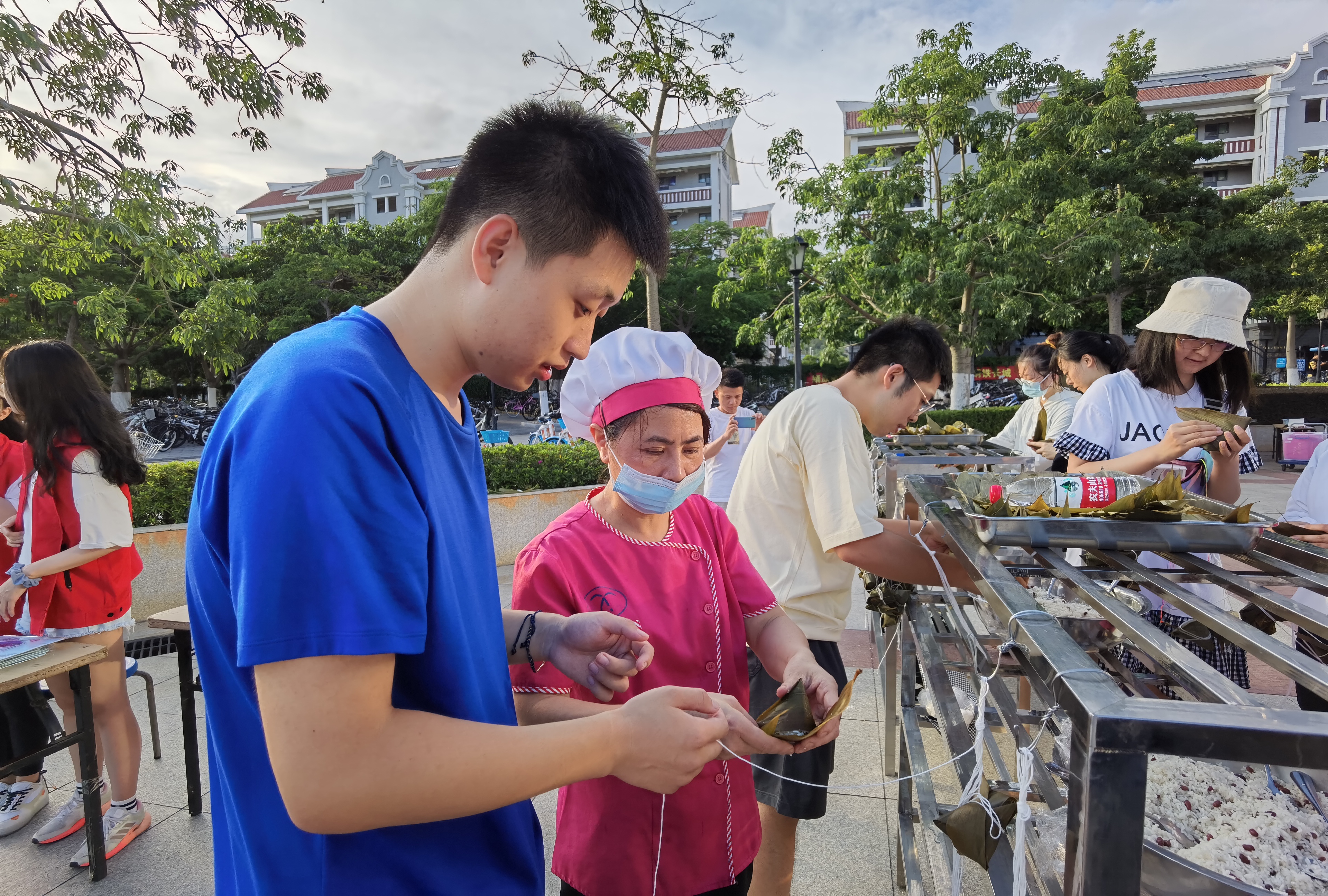 据了解,每年端午节期间,集团校内外餐厅都组织相关的包粽子送粽子活动,不仅弘扬了中华传统文化,让师生感受节日的温馨,也在包粽子过程感受后勤人的辛勤劳动,更加尊重后勤人。