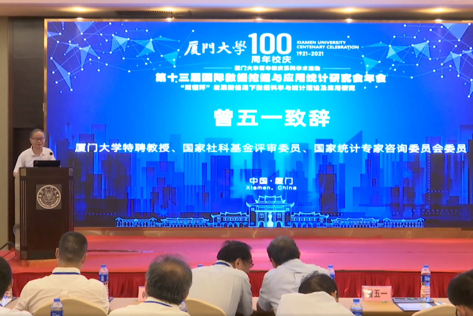 作为厦门大学百年校庆系列学术活动之一,第十三届“国际数据挖掘与应用统计研究会年会”会议主题是“‘双循环’发展新格局下数据科学与统计理论及应用研究”。从2006年以来,该年会一直致力于为全世界政府、高校、研究机构以及企业界的数据挖掘专家和数据科学家提供一个学术交流的高端平台。至今,“国际数据挖掘与应用统计研究会年会”已成功举办十三届。本次会议采取线下会议结合线上直播的形式,线下300余人参加会议,线上5.6万余人观看直播。