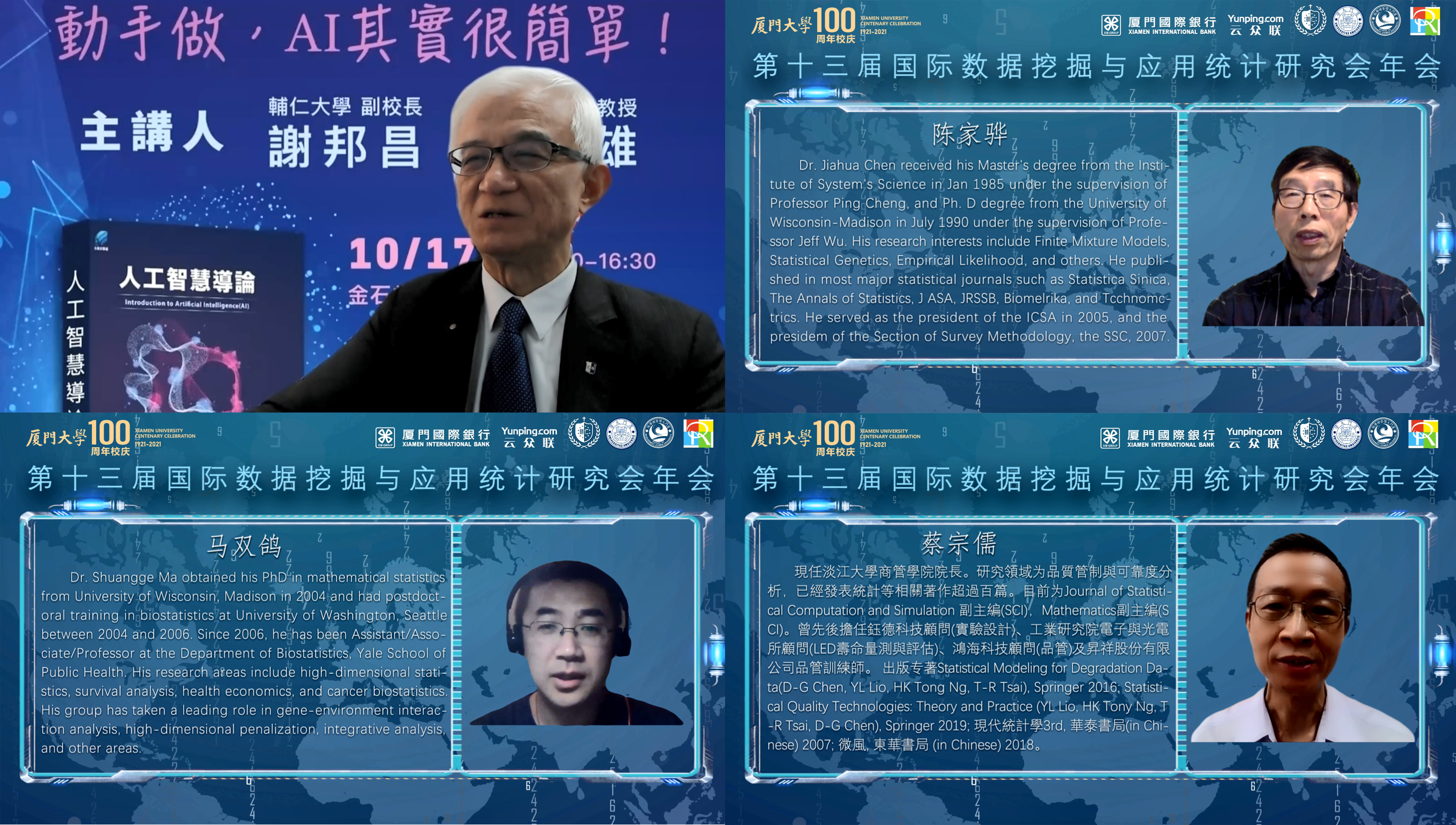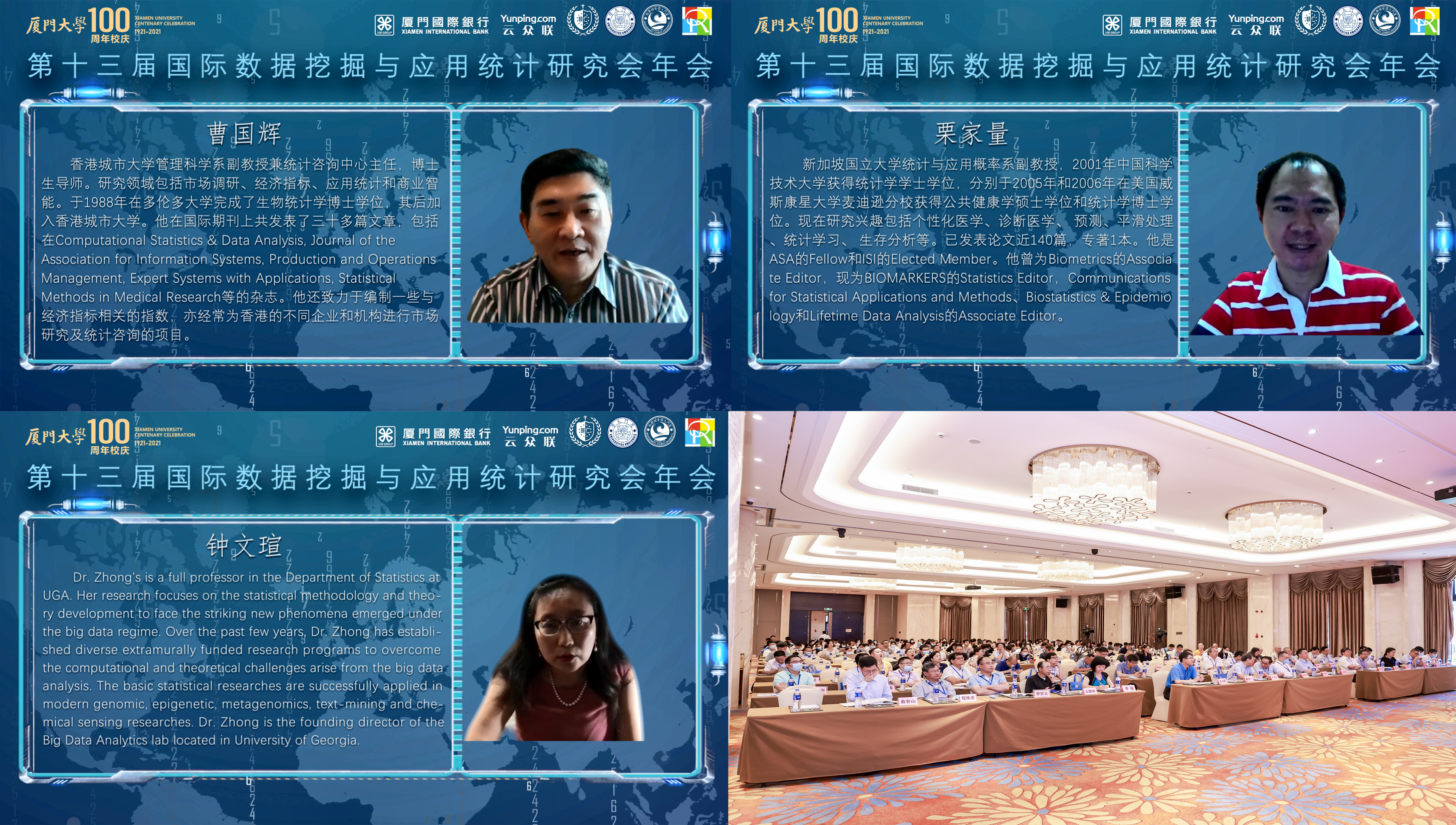 2021年7月23日至25日,第十三届“国际数据挖掘与应用统计研究会年会”在厦门召开。该年会由中国商业统计学会数据科学与商业智能分会、厦门大学、台湾辅仁大学、美国耶鲁大学生物统计系联合主办,厦门大学管理学院、厦门大学健康医疗大数据国家研究院、厦门大学数据挖掘研究中心联合承办,厦门国际银行、厦门市云众联大数据科技有限公司、厦门市统计学会联合协办。